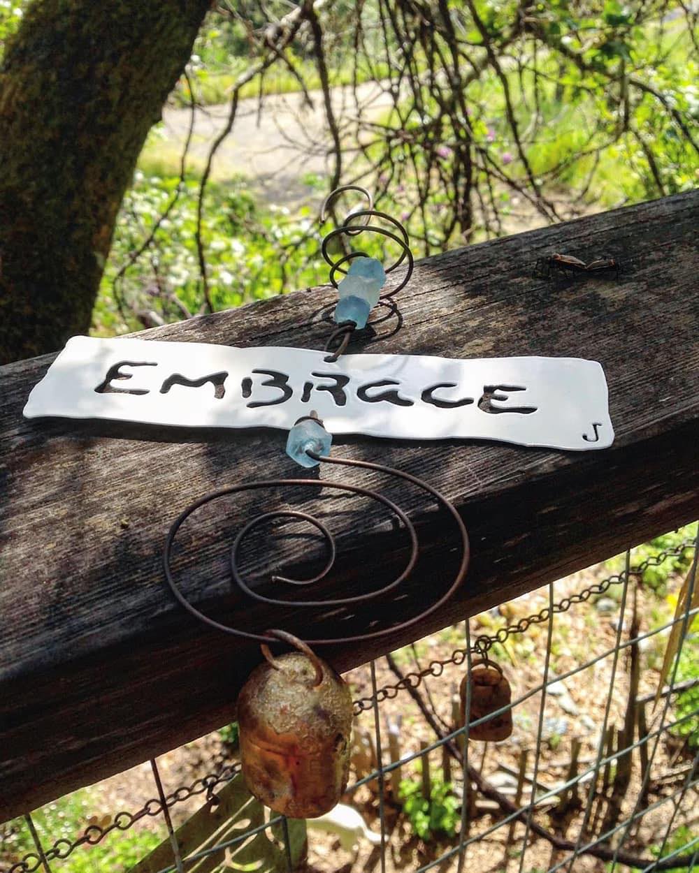My favorite thing about Jendala is creating chimes for people. I have a chime that I see when I walk out of my door everyday that says be peace. It’s such a great reminder. It settles me when I am in a hurry and reminds me when I am in a bad mood. Simply beautiful, word choices to fit any occasion can be silly or sweet, variety of products and can be used in any situation.